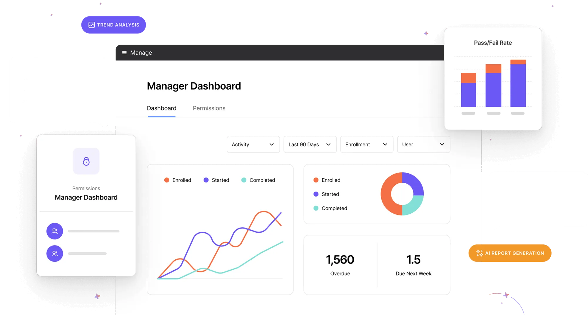 Real-time analytics connect learning to business impact — without the spreadsheets.